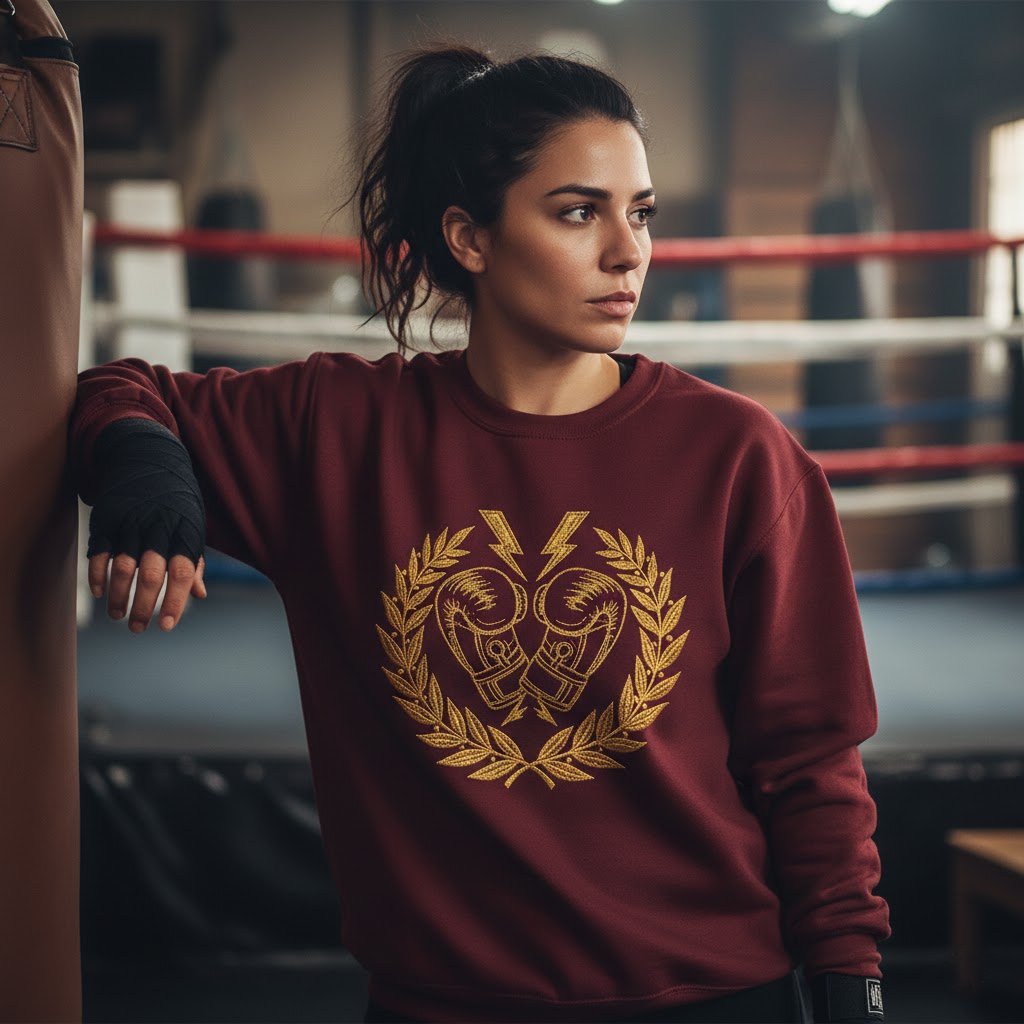 This boxing sweatshirt is fantastic! The material is super soft and warm, perfect for cool-downs. What impressed me most was the detailed stitching of the boxing gloves; it looks incredibly premium. Highly recommend!