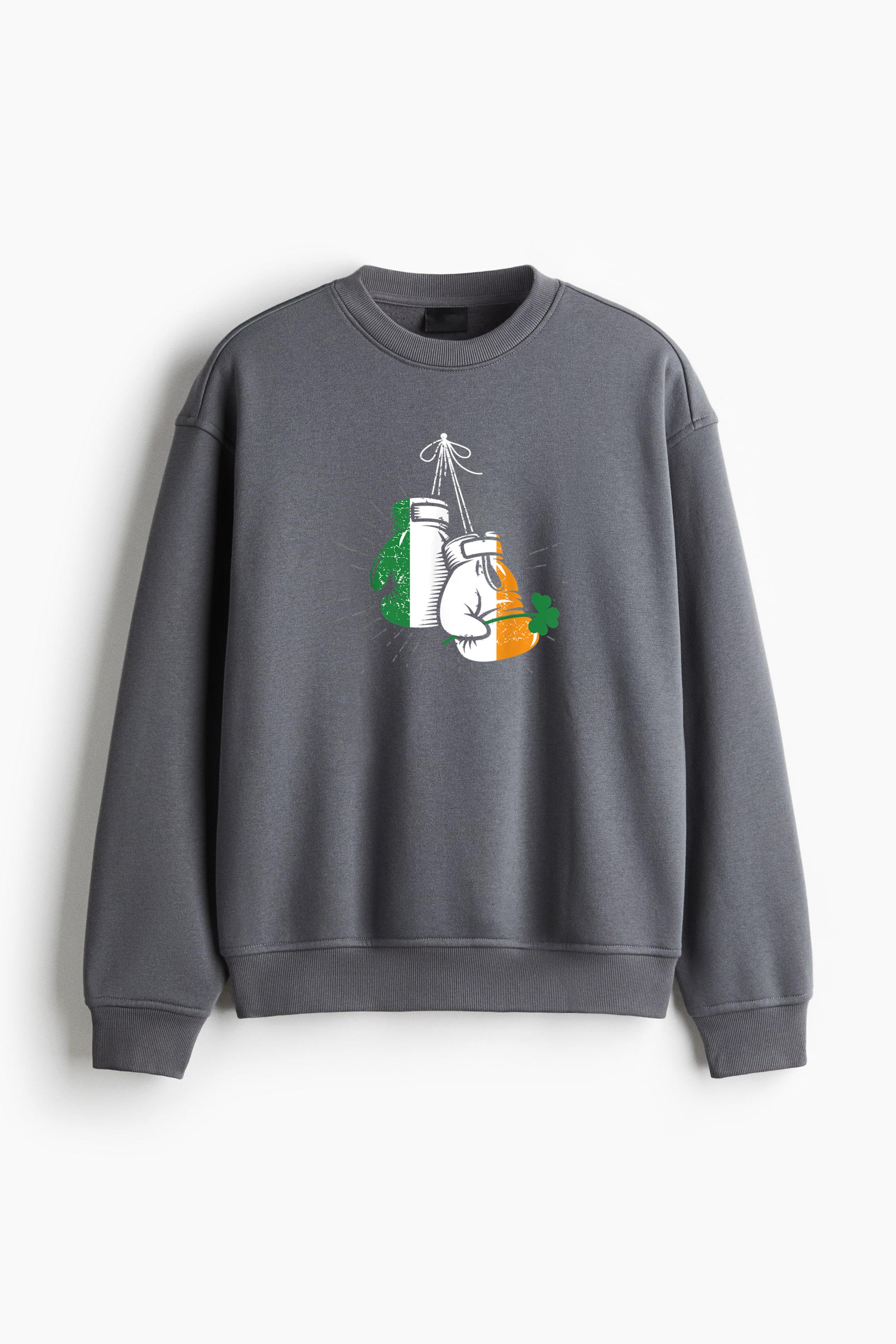 • Ireland Flag Shamrock Irish Boxing Regular Fit Printed Sweatshirt