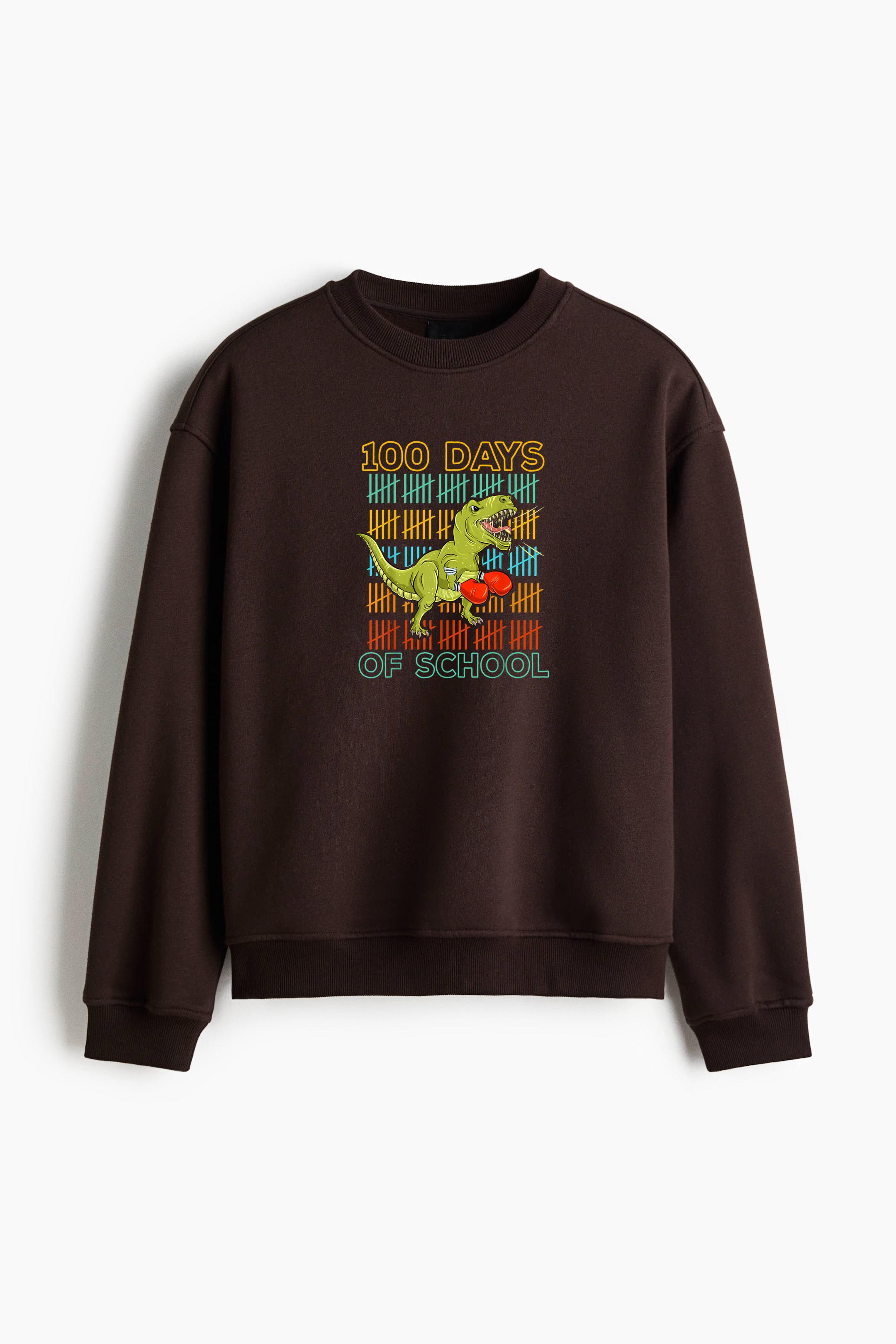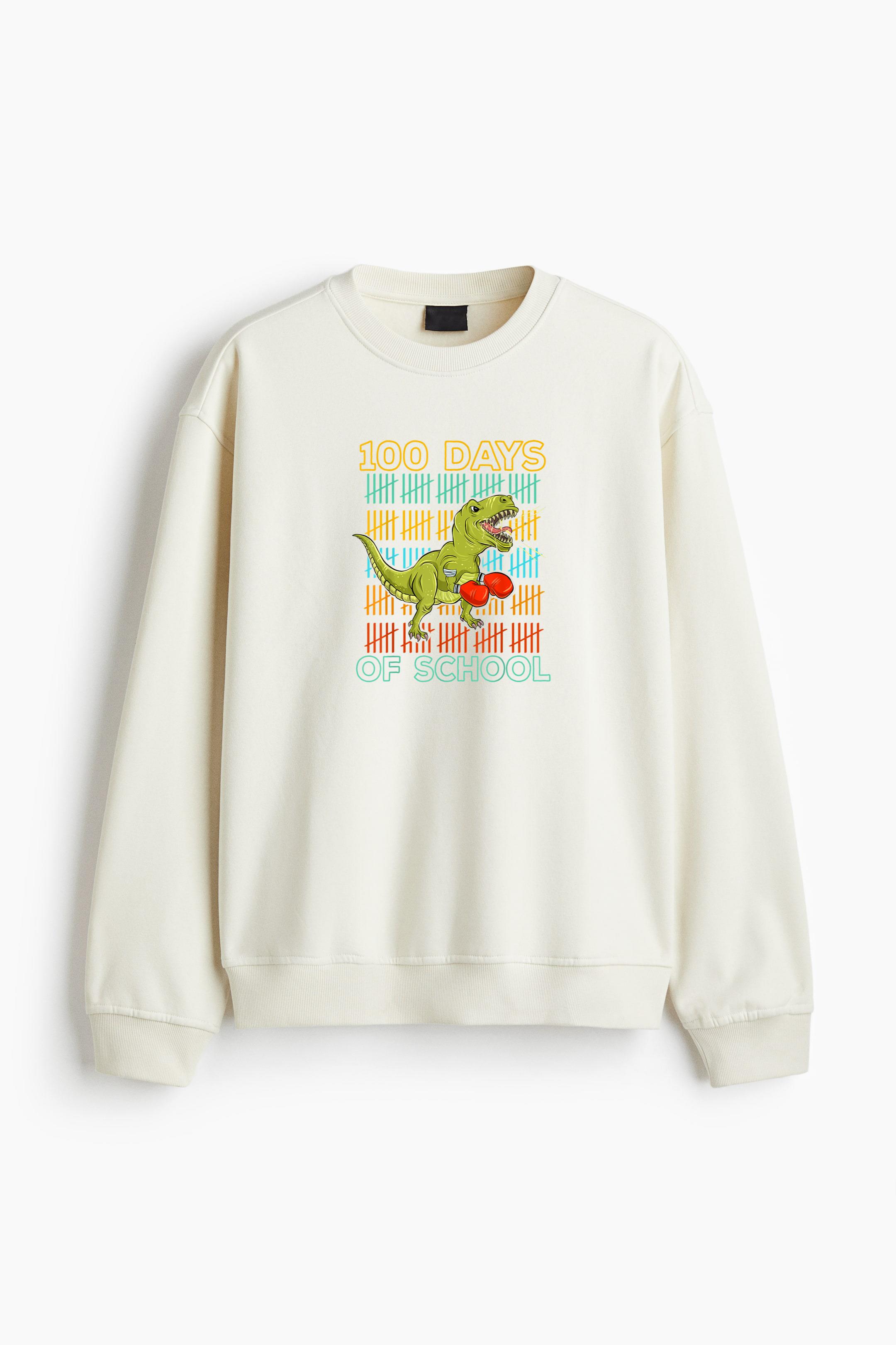 100 Days Of School T Rex Dino Boxing Regular Fit Printed Sweatshirt Regular Fit Printed Sweatshirt – Soft Cotton Fleece Pullover with Graphic Design