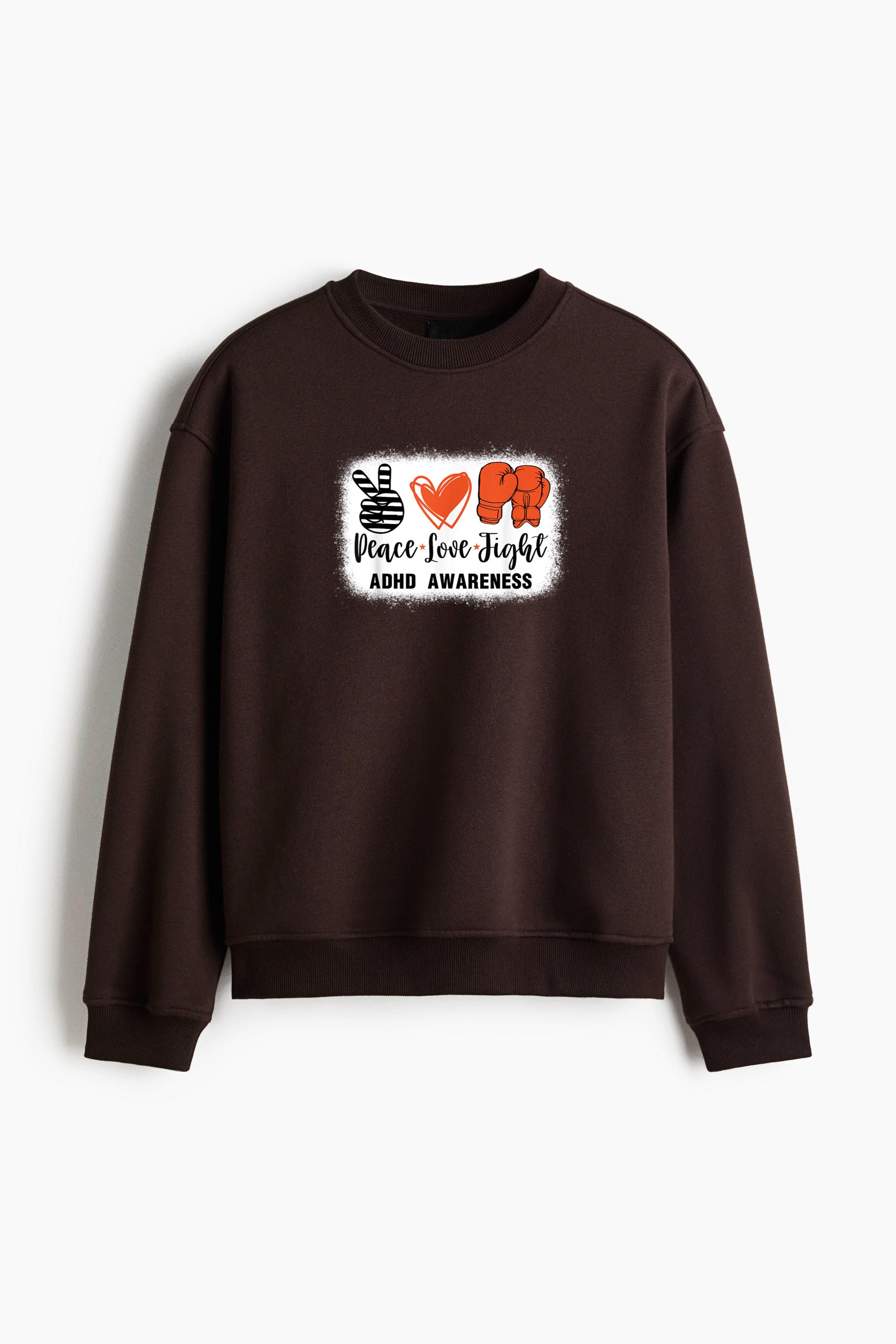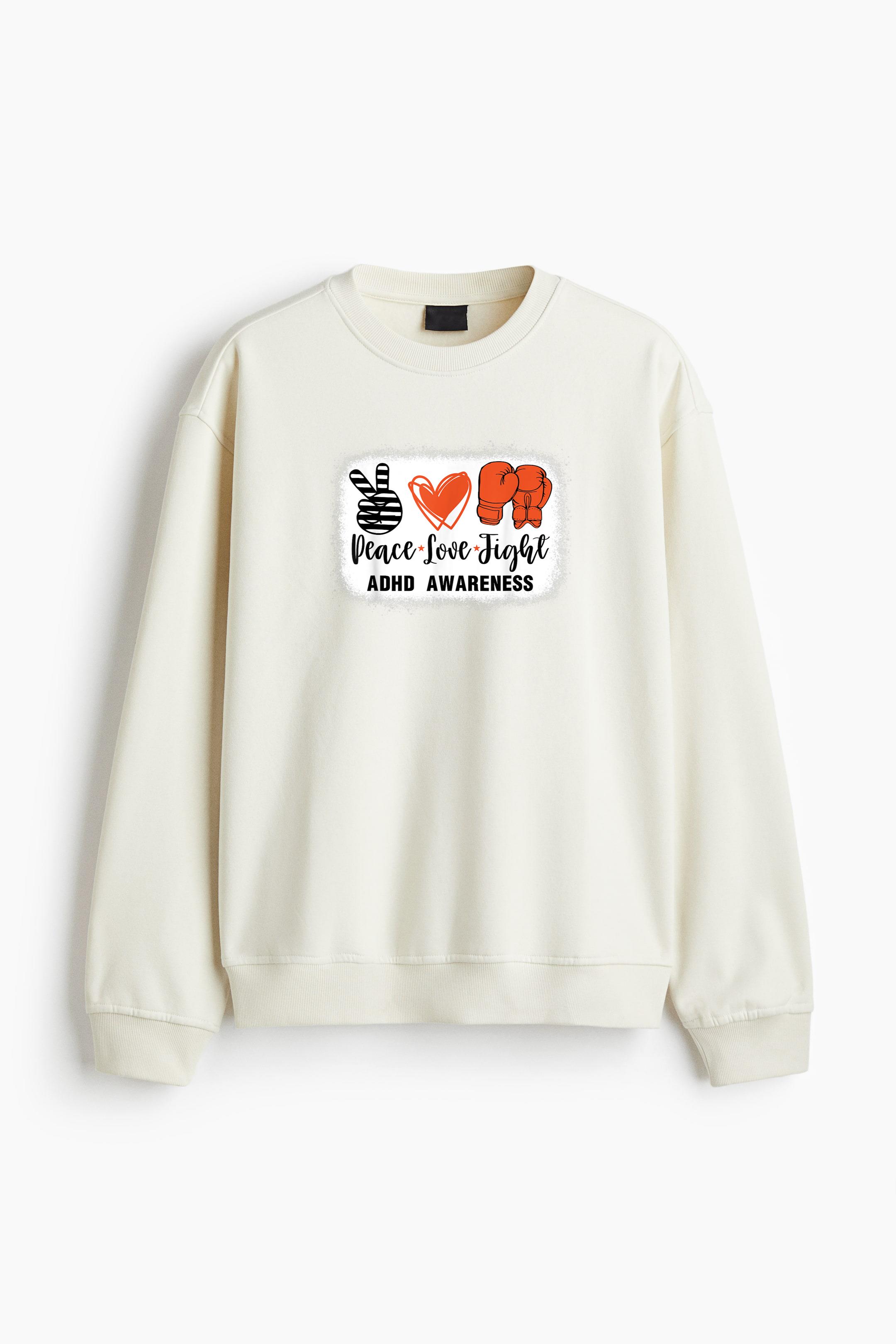 ADHD Awareness Peace Love Boxing Regular Fit Printed Sweatshirt Regular Fit Printed Sweatshirt – Soft Cotton Fleece Pullover with Graphic Design