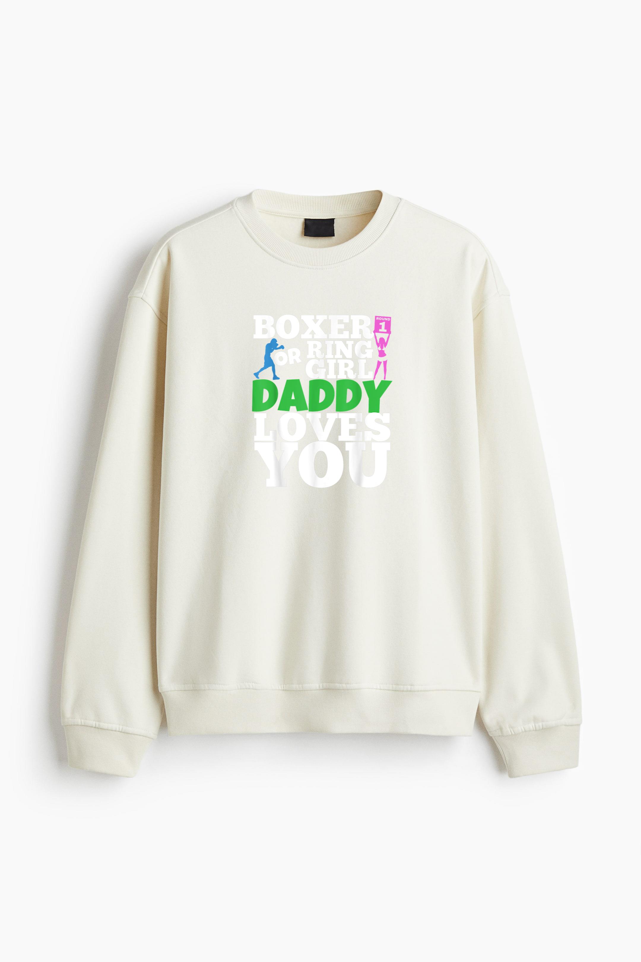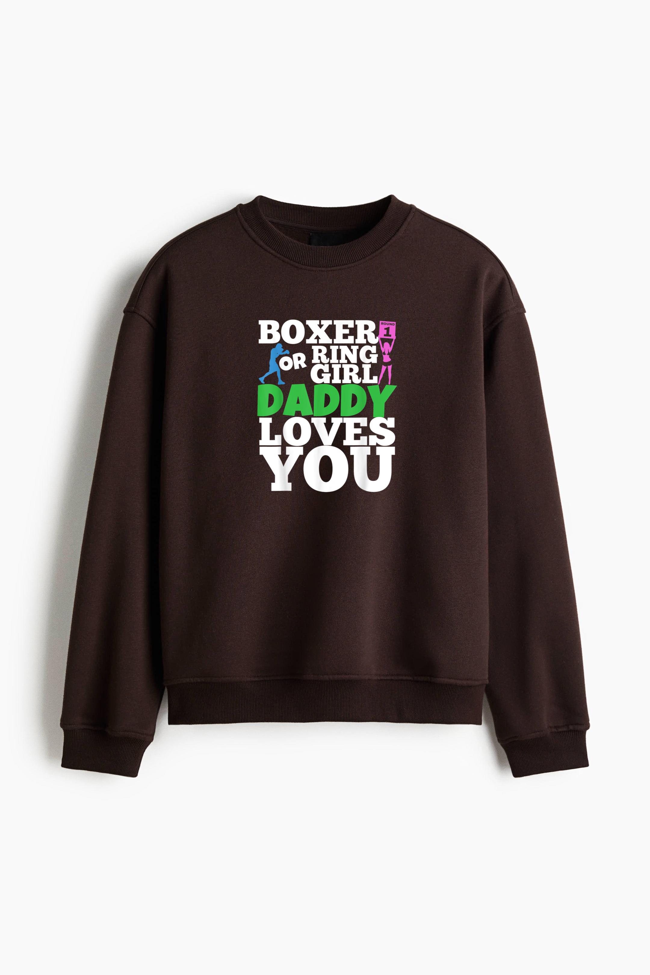 Boxer Or Ring Girl Daddy Loves You Boxing Regular Fit Printed Sweatshirt Regular Fit Printed Sweatshirt – Soft Cotton Fleece Pullover with Graphic Design